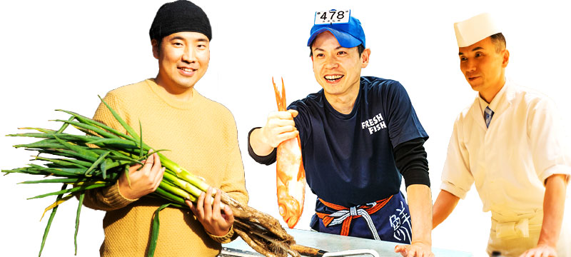 産地こだわりの新鮮で美味しい商品を取引できるだけでなく、入荷状況・水揚げ状況など産地の情報と、売場の様子・お客様の反応など消費地の情報を相互にやり取りすることで、遠隔地でもスムーズで信頼性の高い取引を実現します。